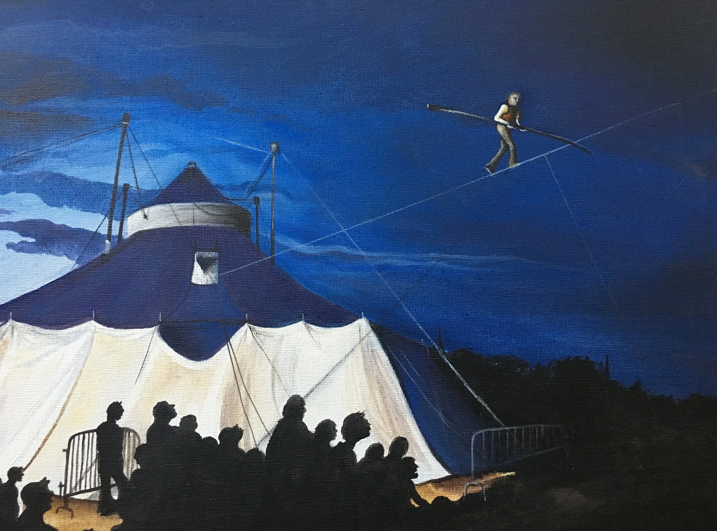 Karen is a prolific visual artist who uses a multitude of materials and styles to create visually arresting works. Her life drawings capture a maximum of movement and expression with a minimum of line. An accomplished circus performer and a founding member of the Big Apple Circus and Vermont's Circus Smirkus, her comedic and acrobatic expertise enables her to capture both the atmosphere and movement of these magnificent scenes. Karen's lifelong love of circus, the inspiration of so much of her artwork, led her to study ballet and acrobatics after graduating Pratt.